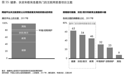 再次,健康、扶貧和教育是最熱門的互聯(lián)網(wǎng)慈善項(xiàng)目主題。