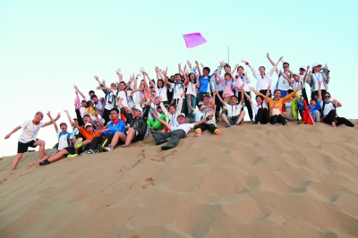 來自北京的劉旭豪流動地回憶道:“我為我所學(xué)到的知識和收獲的經(jīng)歷感到無比自豪。此次沙漠之行最艱難的部分就是徒步穿沙5公里,而每個人的水卻不足550毫升。風(fēng)中的沙粒拍打在我們的臉上和頭發(fā)上,我從來沒有過這么糟糕的感覺,口干舌燥、精疲力竭。我們相互支持,將同伴從沙丘和沙子中拉出來,并且彼此分享極為稀缺的水資源,最終我們穿沙成功!”