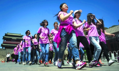 ▲300多名乳腺癌康復(fù)者和青年志愿者在長(zhǎng)城參加了“悅享健康 為她而行”全國(guó)乳腺癌公眾宣教公益項(xiàng)目健步走活動(dòng)