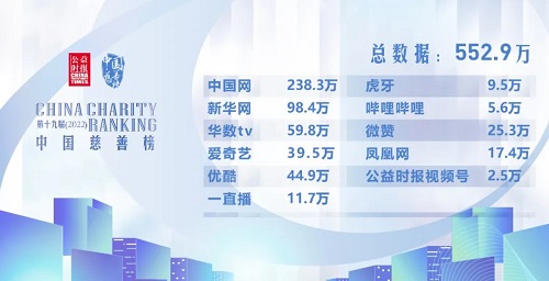 傳播數(shù)據(jù)是最為直觀的體現(xiàn)。5月30日第十九屆(2022)中國(guó)慈善榜發(fā)布活動(dòng)開(kāi)播后,短時(shí)間內(nèi),幾大直播平臺(tái)就有總計(jì)超過(guò)552.9萬(wàn)人次同時(shí)在線觀看,引發(fā)了極大的社會(huì)關(guān)注。