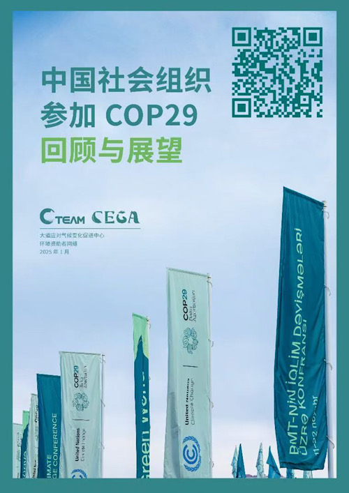2025年1月26日,大道應(yīng)對氣候變化促進(jìn)中心(C Team)與環(huán)境資助者網(wǎng)絡(luò)(CEGA)在京聯(lián)合發(fā)布《中國社會(huì)組織參加COP29回顧與展望》報(bào)告。該報(bào)告全面梳理了中國社會(huì)組織在聯(lián)合國氣候變化框架公約第二十九屆締約方大會(huì)(COP29)上的參與情況,并對未來氣候行動(dòng)及COP30進(jìn)行了展望,旨在為全球氣候治理提供中國民間視角與智慧。