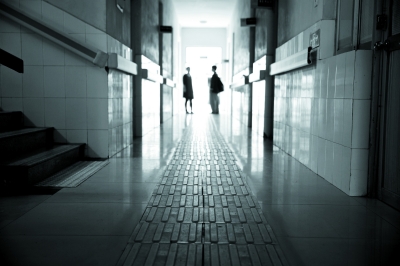 “非視覺(jué)太極”的教學(xué)方法起源于萬(wàn)周迎教特殊學(xué)校孩子太極的一些心得體會(huì)。他發(fā)現(xiàn)盲生在學(xué)太極的時(shí)候更加專注,往往比普通學(xué)生都要學(xué)得好。圖為萬(wàn)周迎在泰安特殊中心的教學(xué)樓里和老師交流。