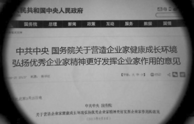 《中共中央國(guó)務(wù)院關(guān)于營(yíng)造企業(yè)家健康成長(zhǎng)環(huán)境弘揚(yáng)優(yōu)秀企業(yè)家精神更好發(fā)揮企業(yè)家作用的意見》,這份題目全長(zhǎng)41個(gè)字的文件明確指出,企業(yè)家是經(jīng)濟(jì)活動(dòng)的重要主體,更勾勒出新時(shí)期優(yōu)秀企業(yè)家精神的核心內(nèi)涵:弘揚(yáng)企業(yè)家愛國(guó)敬業(yè)遵紀(jì)守法艱苦奮斗的精神;弘揚(yáng)企業(yè)家創(chuàng)新發(fā)展專注品質(zhì)追求卓越的精神;弘揚(yáng)企業(yè)家履行責(zé)任敢于擔(dān)當(dāng)服務(wù)社會(huì)的精神。
