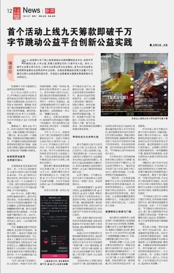 首個活動上線九天籌款即破千萬 字節(jié)跳動公益平臺創(chuàng)新公益實(shí)踐