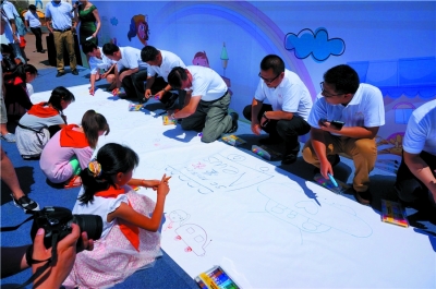 在活動現(xiàn)場,小朋友們拿起畫筆,畫出自己心中的家。一位留守兒童畫了一個大大的房子,房子旁邊是汽車,他告訴記者:“房子里畫的是爸爸、媽媽和我。”一幅小小的畫作已經(jīng)表達(dá)了孩子心里的聲音。