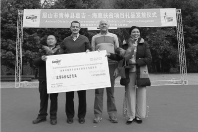 2017年3月1日,由嘉吉公司與國(guó)際慈善機(jī)構(gòu)國(guó)際小母牛組織及其合作伙伴四川海惠助貧服務(wù)中心共同發(fā)起的一個(gè)扶貧項(xiàng)目在四川省青神縣正式啟動(dòng)。該項(xiàng)目旨在通過支持當(dāng)?shù)剞r(nóng)民養(yǎng)殖肉雞、蛋雞,幫助450個(gè)貧困農(nóng)戶增加收入,擺脫貧困,最終實(shí)現(xiàn)可持續(xù)發(fā)展。青神縣政府領(lǐng)導(dǎo),嘉吉公司、海惠·小母牛組織的高層共同出席了當(dāng)天的雞苗捐贈(zèng)儀式,八位接受援助的村民代表農(nóng)戶也參與了儀式。