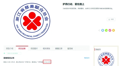 記者了解到,該籌款活動(dòng)為浙江廣電聯(lián)合浙江省慈善聯(lián)合總會(huì)發(fā)起的“護(hù)燕行動(dòng)”,旨在“為家庭條件極度困難,身患重疾,自身無(wú)力承擔(dān)巨額醫(yī)療費(fèi)的家庭募集資金”。截至2019年12月2日,愛(ài)心網(wǎng)友共向“護(hù)燕行動(dòng)”項(xiàng)目捐款481942.58元。